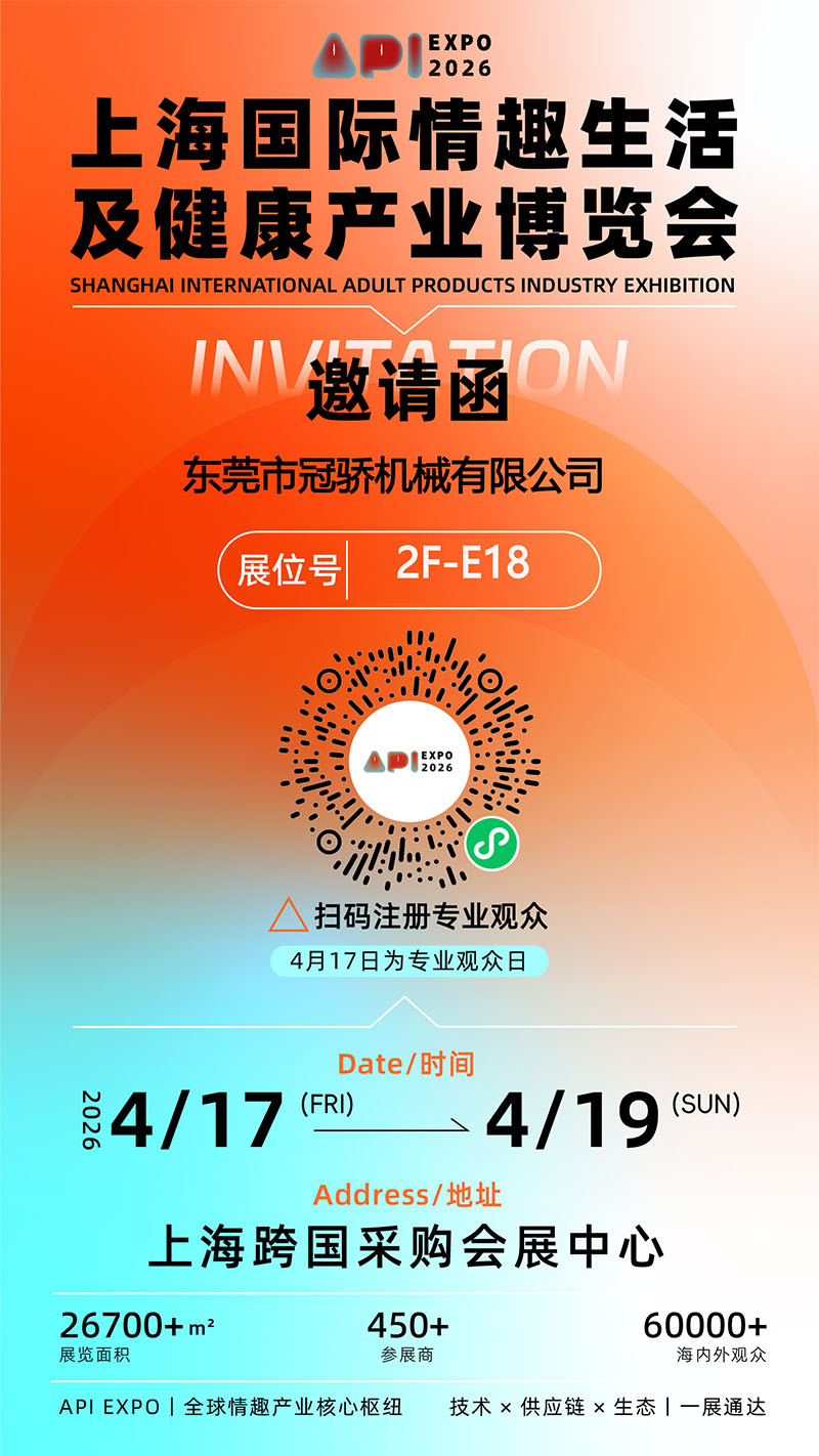 冠骄机械参展 2026 上海 API 情趣产业博览会,诚邀莅临